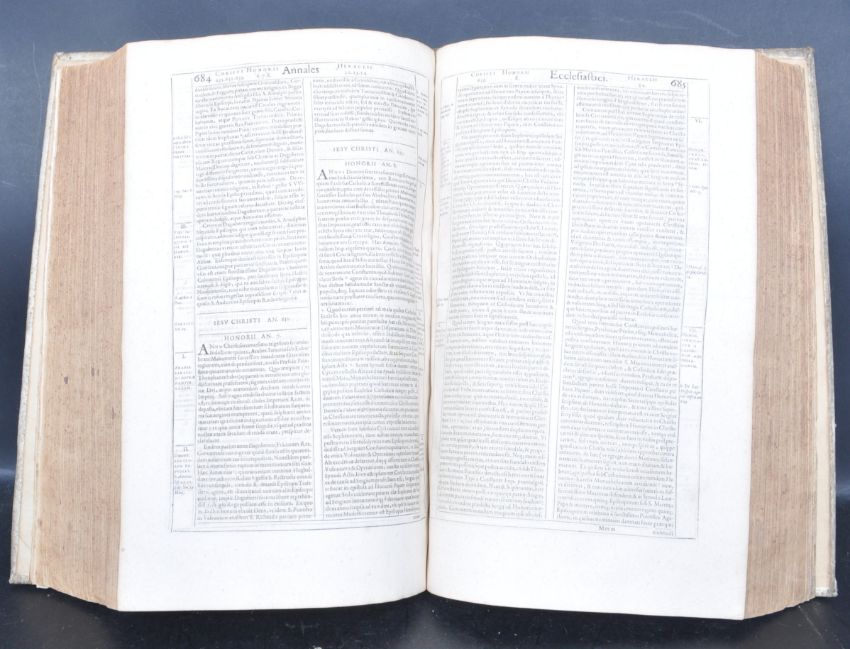 Annales Ecclesiastici - Caesaris Baroni - published 1614. A 17th Century book detailing the history of the Christian church written in latin, having a velum cover. Measures 40cm x 27cm