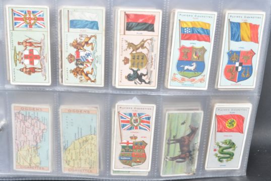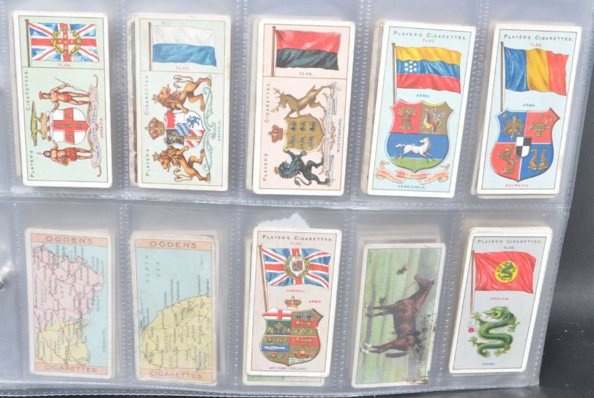 A large collection of 20th century cigarette cards. Over 100 in total. Collection includes, Players past and present, Miniatures, Butterflies, Tropical Birds, Dogs, Flowers. Also included are cigarette packet covers including, Craven, Churchmans, Walters and more. Flags & Emblems of the World. HMS 1902-1962, The Sea Our other world. Gems of Belgian Architecture and more. Comes with a collection of First Day Covers.