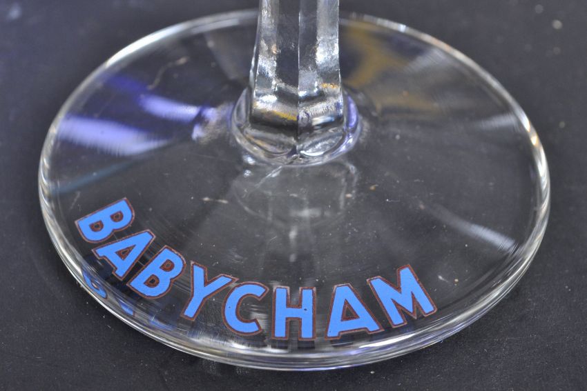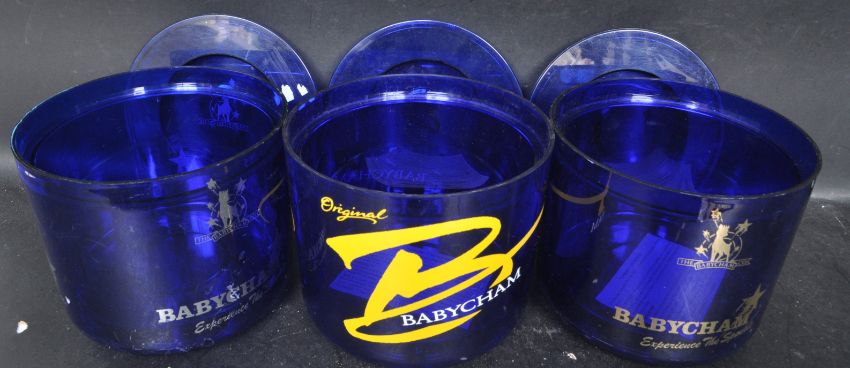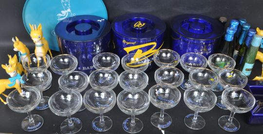 A large and extensive collection of vintage retro 20th century Babycham advertising ware / collectors ware to include: three Ice buckets, three small posters, small plastic bag, 17 circa 1950’s white Bambi glasses, 1 round tray, 4 Bambi's, 1 ashtray, 4 order pads, 11 Bambi's, 6 Bottles, 4 Glasses.
