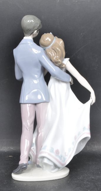 A ceramic porcelain Spanish Lladro figurine entitled 'Now And Forever' depicting a dancing couple. Figure model number 7642.  Complete with original presentation box and makers marks to the underside. Appears mint within the original box. Measures 30cm tall. Note; from a large private collection of figurines. Condition is stated within each description, however buyers are reminded that such statements are not forensic reports and all items will remain sold 'as is'. As a rule, statues do appear mint and undamaged, but this is not guaranteed. Boxes range in condition, and some have wear from storage. In all instances buyers are required to satisfy themselves