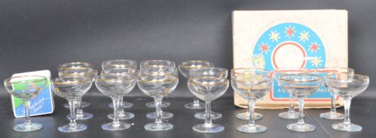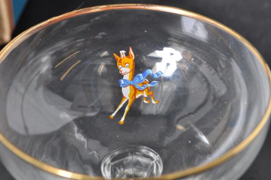 A collection of vintage retro 1960’s Babycham glasses. The collection to include: nine Babycham dark blue fonts glasses, ten Babycham light blue fonts, one pack of Babycham beer mats, and Babycham six glass Party Pack.