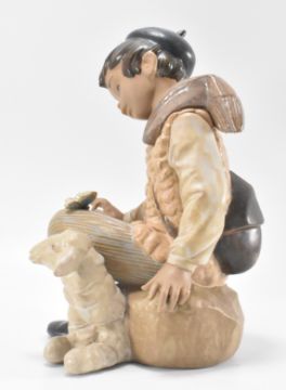 A large ceramic porcelain Spanish Lladro figurines. “ Tender Moment “ 2222 - depicting a boy with a lam. Makers mark to the underside.