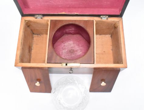 A collection of four 19th century and later boxes comprising of a mahogany tea caddy, a 19th century Tunbridge inlaid tea caddy, a mother of pearl inlaid jewellery / trinket box and more. Largest measure 35cm wide.