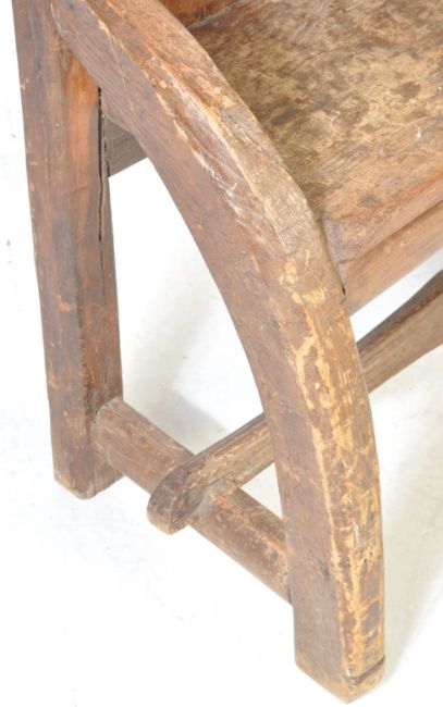 An unusual 20th century hard wood / reclamation / provincial hall stand / settle having naturalistic show wood frame with mirror back. Measures, 211 cm H x 88 cm W x 46 cm D