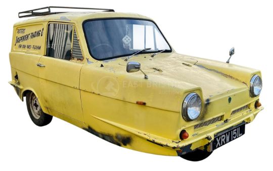 XRW 151L is a 1973 Reliant Regal Supervan III. Painted in full Trotter livery, with ' Trotters Independent Traders - New York - Paris - Peckham ' to both sides and the rear door. Tax and MOT exempt, the van has recently undergone a light re-commission in order to return it to running order. It has been stored for many years, and whilst it is running as it should - it could do with further recommissioning and restoration before putting back on the road in a full capacity. Electrics are untested and require attention. Retains its original 700cc Reliant engine, original brown vinyl seats and period carpets. As a second-hand vehicle buyers are reminded that such items are sold strictly 'as is' with no guarantees or warranties as to any aspect of its mechanical or electrical safety, or roadworthiness implied by East Bristol Auctions or any agent. Viewing is highly recommended. V5C not present (this may be located prior to auction - this message will be updated if so).