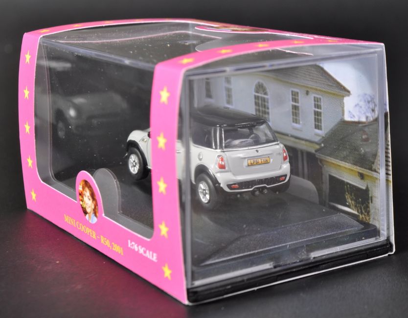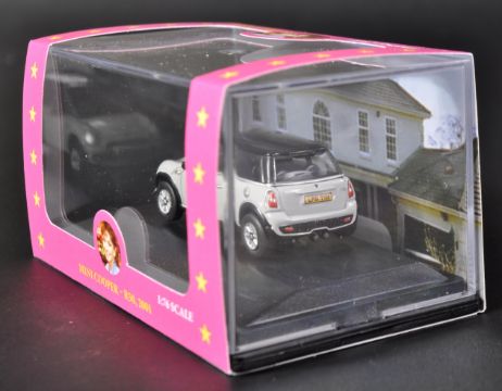 Only Fools & Horses - 40th Anniversary Auction - Marlene's Mini Cooper - Oxford made autographed 00 gauge 1/76 scale Mini. The box autographed by Sue Holderness who plays Marlene in the series.