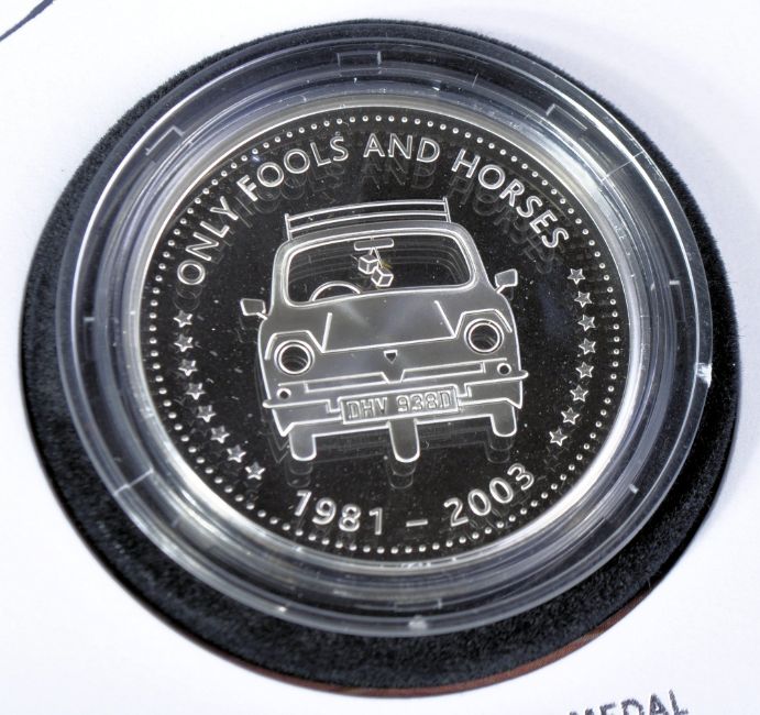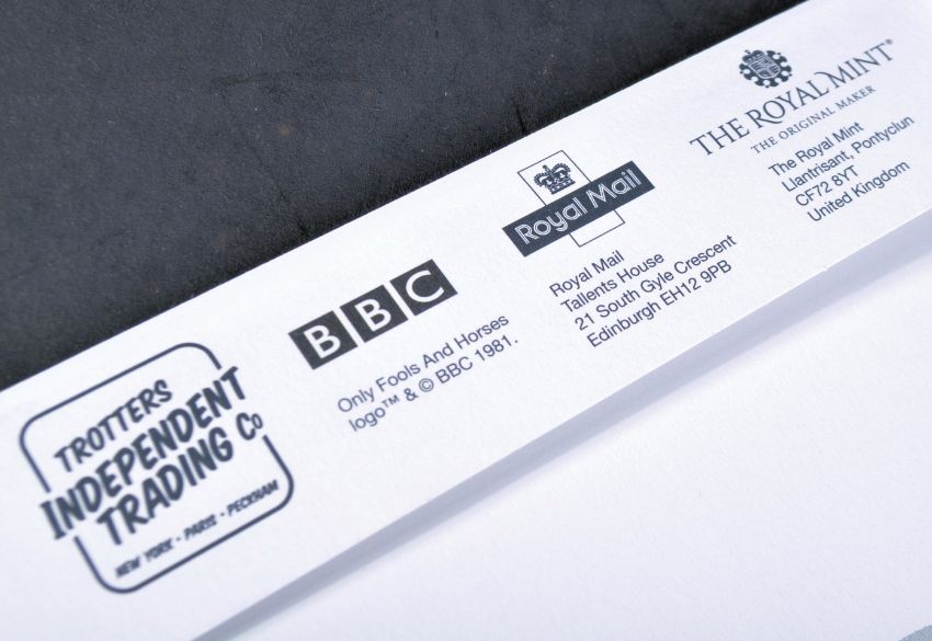 Only Fools & Horses - 40th Anniversary Auction - Royal Mail - a limited edition commemorative .925 silver proof coin presentation cover featuring an Del Boy along with stamps from the series. Signed by Sir David Jason in black ink. Limited edition No. 828/1981 produced (not all were signed by Jason). Housed in its original presentation box. Uncirculated. Supplied with a COA from the Only Fools and Horses Appreciation Society.