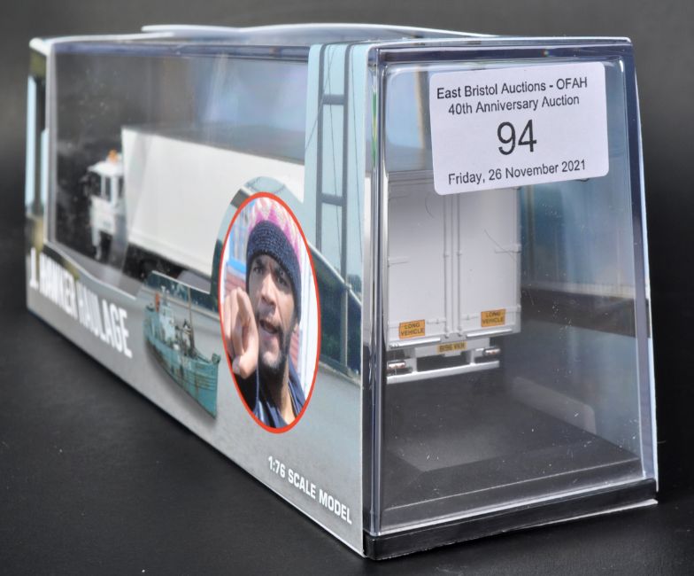 Only Fools & Horses - 40th Anniversary Auction - To Hull And Back - autographed 00 gauge 1/76 scale DAF 2800 ' J. Hawker Haulage ' lorry. The box autographed by Paul Barber who played the Denzil in the series. Brand new.