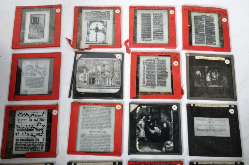 An extensive 19th Century Victorian Magic Lantern glass slide collection with an original Magic Lantern projector / viewer. Comprises the viewer with case & equipment along with approx; 100 slides. Measures approx; 45cm long.