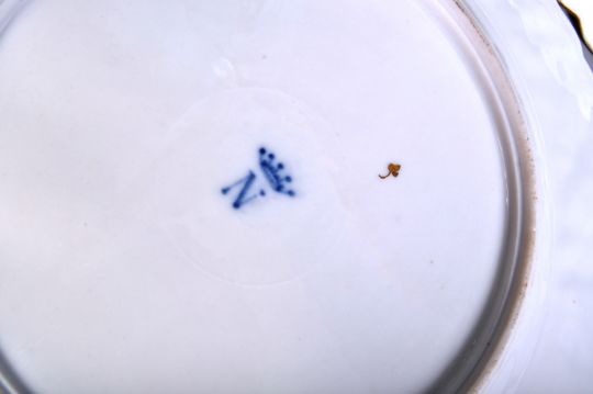 A matching set of six late 19th Century Italian Capodimonte cabinet display plates. Each plate having moulded decorated rims of bacchanalian figures with central crests and gilt detailing throughout. Each plate bearing marks to the bases. Wear commensurate with age with wear to the gilt paint, no major visible damage, overall good. Each plate measures approx; 21cm diameter.