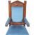A 19th Century Victorian Gothic revival ecclesiastical town hall / country house oak throne armchair arm chair having a carved dove to the back rest with blue upholstery seat and backrest. Carved column detailing and all raised on turned legs. Measures approx; 129cm x 53cm x 64cm.