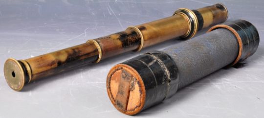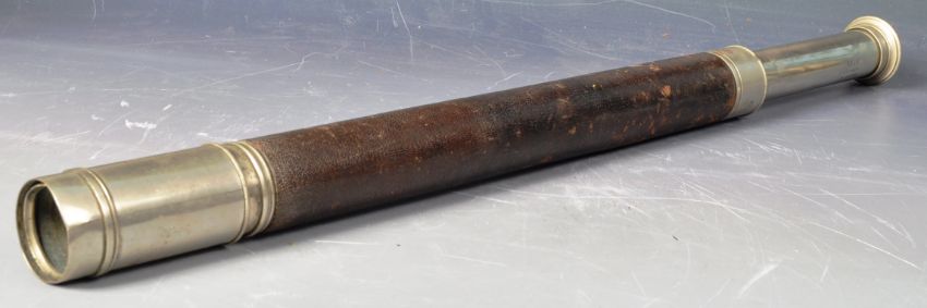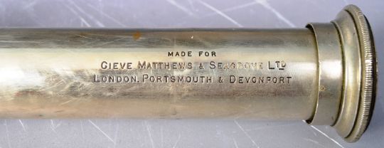Two 19th Century & later military naval telescopes comprising a draw telescope by Ross Of London for Gieve Matthews & Seagrave Ltd, London, Portsmouth and Devonport, another similar draw telescope along with a later pair of binoculars. Ross example measures approx; 62cm long.