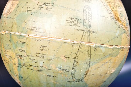 An early 20th Century Phillips 12 Inch Terrestrial Globe. The desk top globe of typical form being raised on a turned column stand over circular base. Measures approx. 46cm tall.