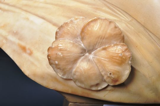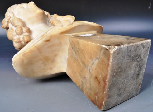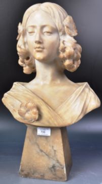 A 19th Century Victorian marble bust of a young woman / girl decorated with flowers in her hair and upon her garments. The lady raised on mottled marble pedestal base. Measures 50cm x 32cm x 19cm.