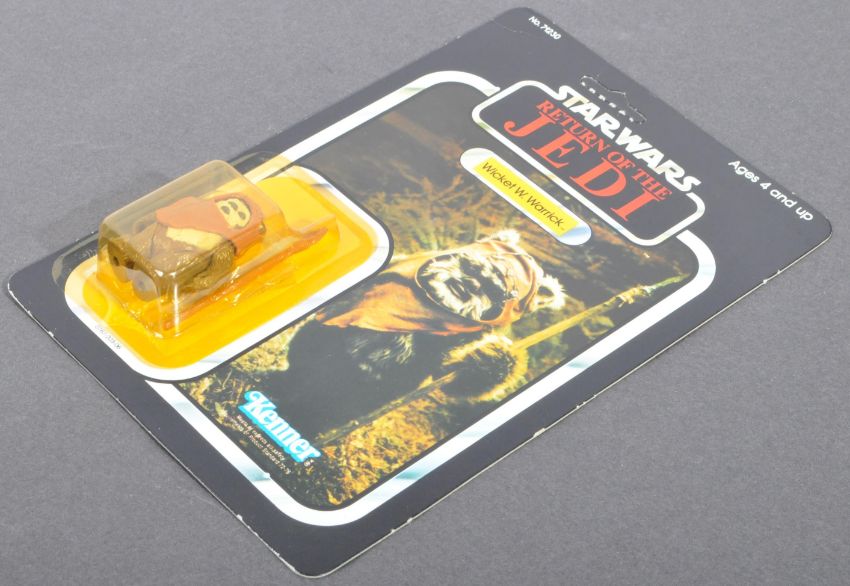 Star Wars - An original vintage 1984 Kenner made Star Wars carded MOC action figure ' Wicket W. Warrick ' (Ewok). Factory sealed upon its original unpunched 79 back Return Of The Jedi card. The bubble with no splits or dents, weapon still taped in place. Card back very near mint. Generally very near mint example.