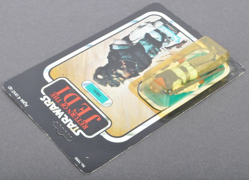 Star Wars - An original vintage 1984 Kenner made Star Wars carded MOC action figure 'Nikto '. Factory sealed upon its original unpunched 79 back Return Of The Jedi card. The bubble with no splits or dents, weapon still taped in place. Card back very near mint with only minor surface veining. Generally near mint example.