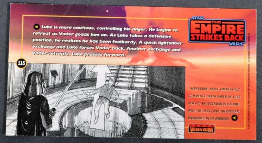 Star Wars - James Earl Jones (Voice Of Darth Vader) - an autographed official Topps Widevision Empire Strikes Back trading card. Signed neatly in gold ink to a dark area of the image. Obtained personally by the vendor. 6.5cm x 12cm.