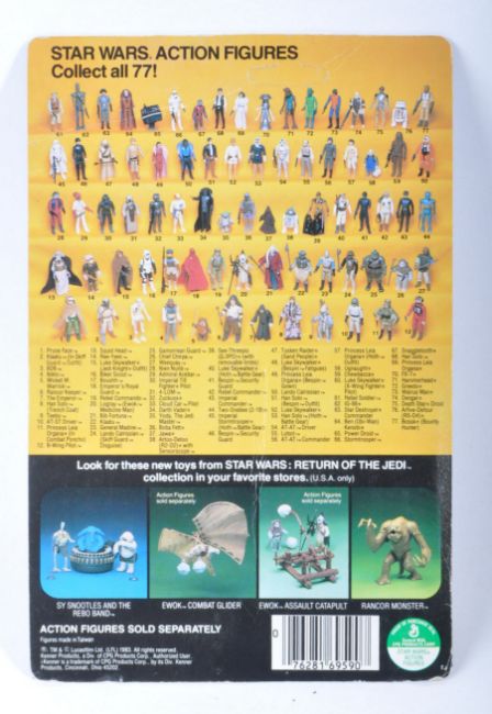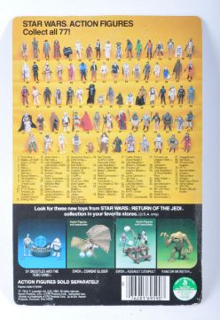 Star Wars - An original vintage 1983 Kenner made Star Wars carded MOC action figure ' Ree Yees '. Factory sealed upon its original unpunched 77 back Return Of The Jedi card. The bubble with no splits or dents, weapon taped in place. Card back G+ to VG with some veining to the top. Generally VG.