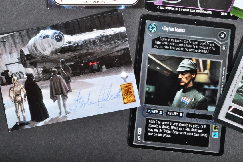 Star Wars - Trading Cards - a collection of x6 autographed officially licensed trading cards. Includes cards signed by: Howie Weed, Stephen Calcutt, Silas Carson, Jack McKenzie and Denis Lawson. Some official signed cards, others obtained personally by the vendor. All undedicated.