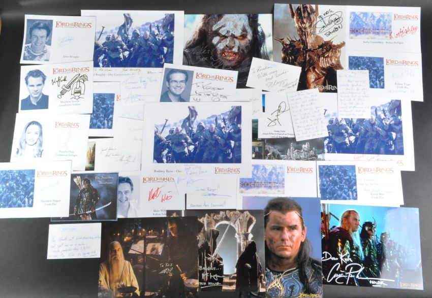 The Lord Of The Rings - Autographs - a large collection of various signed photos, cards, and letters from a host of cast and crew related to the franchise. Autographs include; Craig Parker, Mark Ferguson, Lawrence Makoare, Brent McIntyre, Sala Baker, Rodney Bane, Ian Mune, Anton Desi, Ian Holm (1931-2020), Clinton Ulyatt, Ian McKellen, Victoria Beynon, Ben Barrington, Jed Brophy, Larry Rew, Robert Tripe, Kelly Corbishley, Miranda Rivers, Grant Roa, Thomas Robins, Matt Wilson, Rosella Hart, Matthew Hegan, Matthew Saville (with sketch), John Wraight, Ben Franshaw, Todd Rippon, Jenny Fulle, and many others. Mixture of dedicated and undedicated. 30+ items.