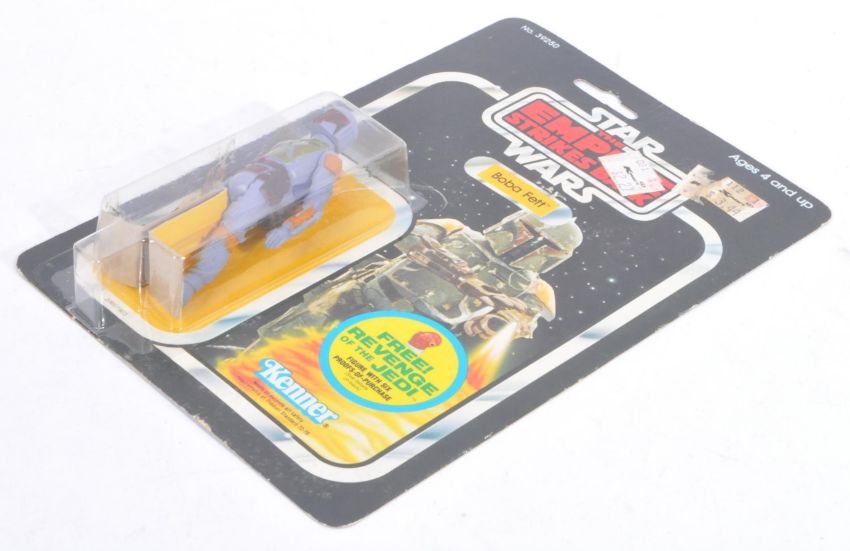Star Wars - An original vintage 1982 Kenner made Star Wars carded MOC action figure ' Boba Fett '. Factory sealed upon its original 48 back The Empire Strikes Back card with Admiral Ackbar Revenge Of The Jedi offer. The bubble fully factory sealed with no splits or dents. Card back mint. Generally a mint example. Scarce.