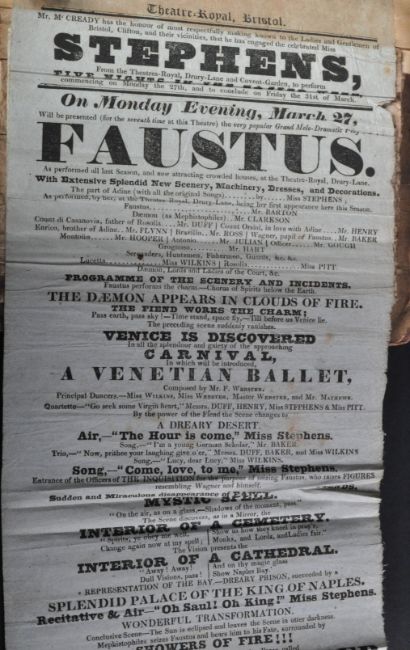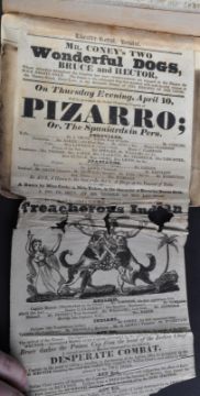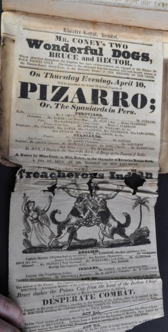 Theatre Royal Bristol (now The Old Vic) - a collection of 19th Century George IV period ephemera from the Theatre Royal Bristol. Includes a book 'Memoirs Of The Bristol Stage' by Richard Jenkins (1826 edition, with laid-in autographs and letter from Jenkins), as well as an album of laid-in playbills for shows / plays from the 1820s to include Pizzaro 1824, Douglas 1824, Jack And The Beanstalk September 2nd 1824, Harlequin And His Horse 1820, and others. Also included is a loose playbill or ' Isabella ' 10th April, 1801, and an extremely scarce Satin playbill for Patrician And Parvenu, 1835 with an accompanying handwritten letter. Unique collection.