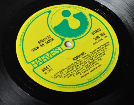 Greatest Show On Earth - Horizons - First pressing - A long play LP vinyl record album made in Gt. Britain on the EMI Harvest label SHVL 769. Matrix numbers A1 / B2. Laminated gatefold sleeve G+ condition. Record condition VG.
