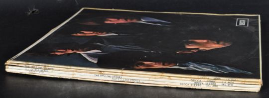 The Rolling Stones - A selection of five vinyl long play LP record albums to include their first album The Rolling Stones (Mono, Decca second pressing LK.4605 VG, with sleeve reading 'I Need You Baby'), No. 2 (Mono on Decca LK.4661 VG), Out Of Our Heads (Stereo on Decca SKL.4733 VG), Aftermath (Stereo Decca SKL.4786 VG with purple shadow outer sleeve) and Around and Around (Stereo French Decca pressing 158.012 VG).