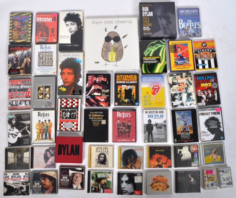 A large mixed collection of albums / boxsets and singles to include a selection of Rolling Stones and retailed approx. 90, multiple The Beatles and multiple Bob Dylan examples to include Tell Tale Signs 1989-2006, Biograph, Radio Radio, etc, Peter Tosh and more. Also include within the lot is a selection of music related DVD’s with multiple tours, The Beatles Anthology, The Rutles etc.