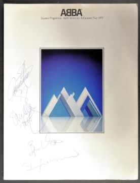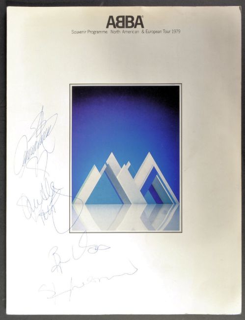 ABBA - Swedish Pop Group - Agnetha Fältskog, Björn Ulvaeus, Benny Andersson, and Anni-Frid Lyngstad - full band autographed 1979 ' North American & European Tour ' programme, from Wembley Stadium, England. Signed to the front by all in blue ballpoint, undedicated. All signed to clear areas. The programme survives in excellent original condition.