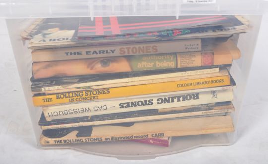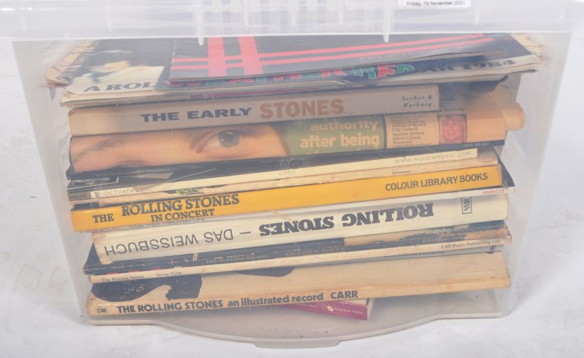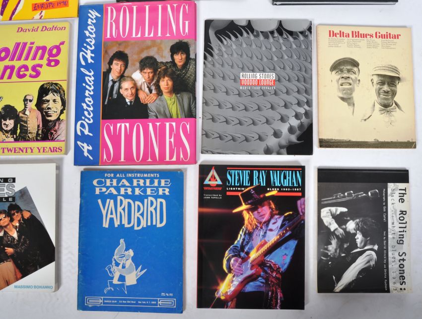 A mixed collection of music related ephemera books / magazines / programs with multiple examples form the rolling stones to include A Pictorial History, Black and White Blues 1963, The Stones Chronicle, The First Twenty Years, Images Of The World Tour 1989-1990, Urban Jungle Europe 1990, Voodoo Lounge World Tour 1994/95, Rolling Stones Complete etc. Together with Dire Straits, The Jimi Hendrix Experience Electric Ladayland music book, Weather Report and more.