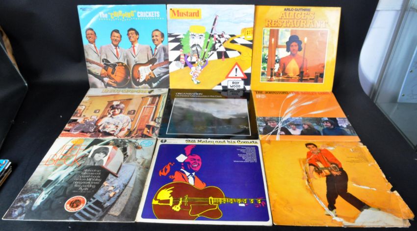 Rock / Folk / Pop etc - A mixed group of approx; 39 long play Lp vinyl records of varying artists and genres to include Ron Wood, Mike Oldfield, Nice Enough To Eat compilation, Bonzo Dog Band, Lindisfarne, Mud Slide Slim, Ringo Starr, Blondie, Steeleye Span, Animals, Orchestral Manoeuvres In The Dark, The "Chirping" Crickets, The Johnstones, Roy Wood, Elvis Presley, Arlo Guthrie, Bill Haley And His Comets, Jeff Beck, Don Fardon and many more.
