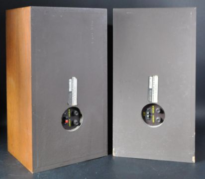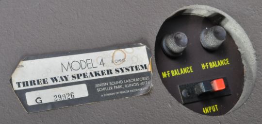 Jensen Sound Laboratories - Model 4 - A matching pair of retro vintage teak cased three way speakers having mesh covered fronts with each within their original boxes. Serial No. 34414 and 29926. Each speaker measures approx; 61cm x 33cm x 31cm.
