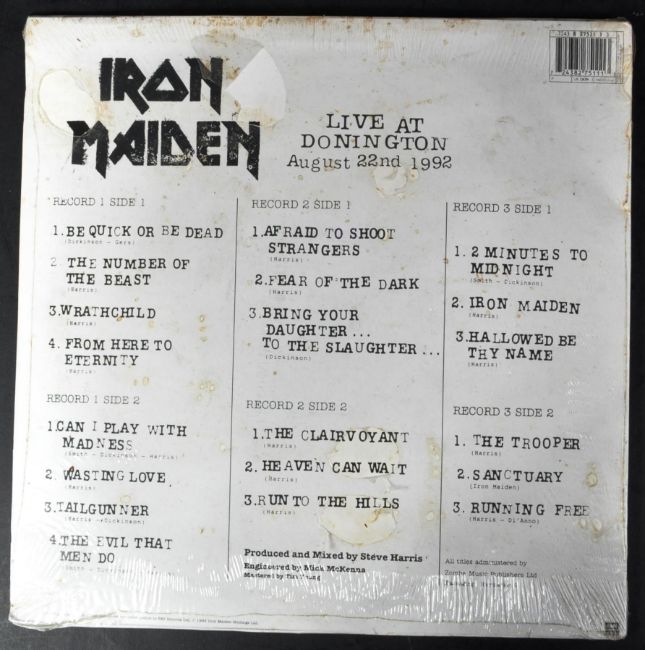 Iron Maiden - Live At Donington August 22nd 1992 - A limited edition triple vinyl LP long play record album on EMI, catalog number 7243 8 27511 1 3. The triple vinyl album still brand new and sealed within the original packing.