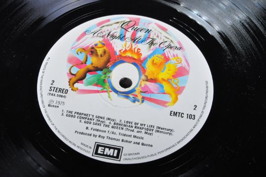Queen - Two long play Lp vinyl record albums to include A Night At The Opera (EMI UK first pressing in Stereo EMTC 103, Matrix No. YAX 5053 - 2 / 5054 - 2 and 'Blairs' in the runoff, VG+ condition) and Jazz (EMI UK first pressing in Stereo EMA788, with inner sleeve and poster (Not Atcheted) VG+ condition).