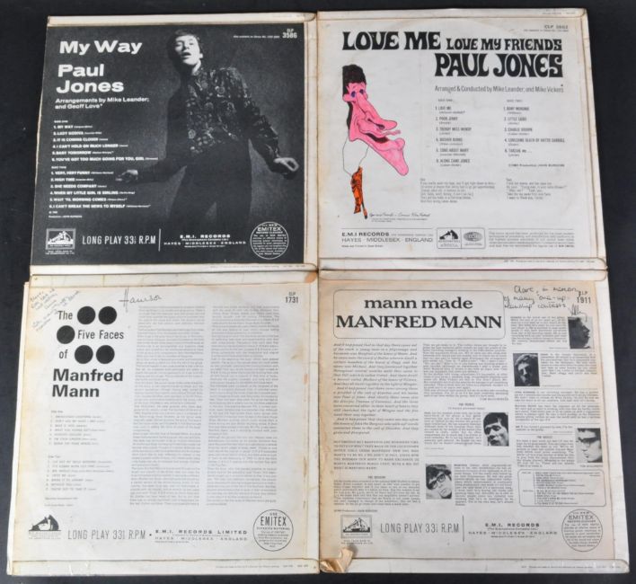 Manfred Mann / Paul Jones - A selection of four long play LP vinyl records to include The Five Faces Of Manfred Mann (HMV Mono, CLP1731, VG+), Mann Made (HMV Mono, CLP1911, VG+), Pail Jones - 'My Way' (HMV, Mono, CLP3586, VG) and Paul Jones - Love Me Love My Friends (HMV, Mono, CLP3602, VG+).