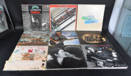 The Beatles and related - A collection of approx; 20+ long play LP vinyl record albums to include Please Please Me (Mono Parlophone PMC 1202, VG), A Hard Day's Night (Stereo Parlophone PCS 3058, G+), For Sale (Mono Parlophone PMC 1240, VG), With The Beatles (Mono Parlophone PMC 1206, VG, ripped sleeve), Help! (German Oden pressing SMO 84008, VG), Rubber Soul (Mono Parlophone PMC 1267, VG), The White Album No. 0372495 (Stereo Apple PCS 7068, VG), At The Hollywood Bowl (Stereo EMTV4, VG+), Red Album (Stereo Apple PCS 7171, VG+), Blue Album no sleeve but with the reverse Apple labels (Stereo Apple PCS 7181, VG) together with albums from John Lennon, The Wings, Paul McCartney and George Harrison.