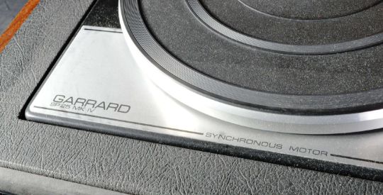 Hacker - Centurion Mk II - A retro vintage 20th Century teak cased record player having a hinged lid opening to reveal a Garrard 25 Mk IV turntable. Hacker model GA500A. Sold as untested by ourselves. Measures approx; 21cm x 46cm x 40cm.