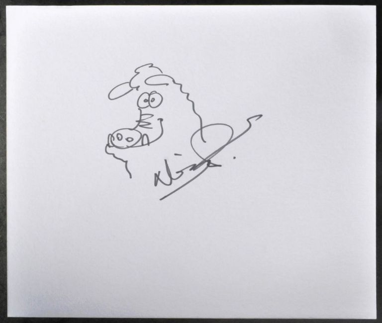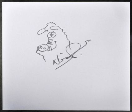 Aardman Animations - Nick Park - Early Man - hand drawn sketch of the character Hognob from the movie. Signed in black ink. Undedicated. On card, measuring approx; 25cm x 30cm. Supplied with a certificate of authenticity from an AFTAL registered autograph dealer.