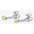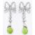 A pair of 18ct white gold, diamond and peridot drop earrings. The studs in the form of bows set throughout with diamonds, with round cut diamonds set to chains below culminating in faceted peridot drops. Unmarked, tests indicate 18ct gold. Measures 4cm. Diamonds measure 2.7mm diameter. Weight 7.4.