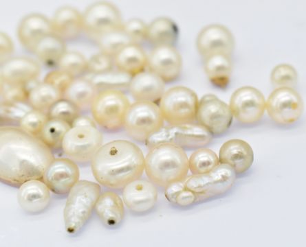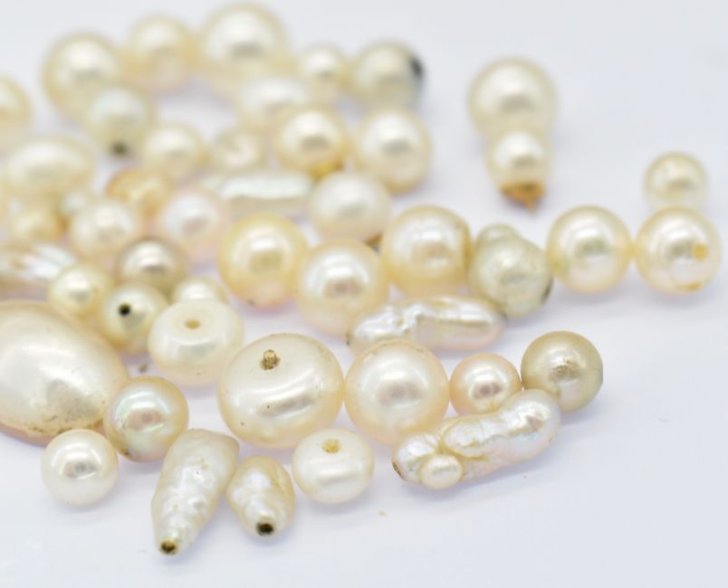A selection of loose pearls. Mostly cultured, some maybe simulants. Some still have remnants of fittings. Measurement guide largest 13mm length.