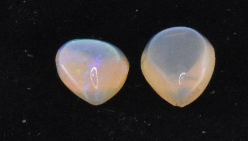Two pear shaped opal cabochons. Measures 9.5 x 6.2 x 2.7mm and 9.6 x 6.3 x 3mm. Weight 0.4g / 1.7ct.