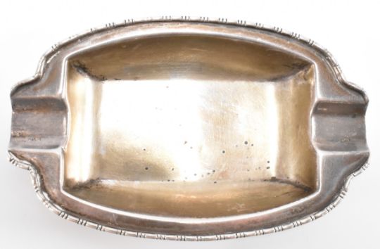 A silver hallmarked Art Deco Atkin Brothers ash tray having moulded borders. Hallmarked Birmingham 1937. Weight 46.2g. Measures 11cm wide.