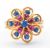 An 18ct gold and gemstone cluster harem ring. The ring set with synthetic ruby and blue stones to cluster setting with filigree decoration and wirework shank. Egyptian assay marks to outside of shank for 18ct gold, tests indicate 18ct gold. Weight 5.5g. Size R