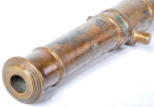 A 19th Century Victorian bronze ornament / desk weight in the form of cannon. The tapering ringed barrel measuring approx 31cm.