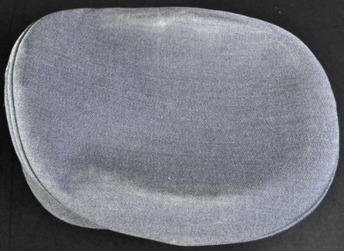 A WWII Second World War style believed Polish Air Force in exile RAF Royal Air Force officers peaked visor cap. Blue wool construction with a bullion thread crowned eagle to the centre on a black band with British RAF buttons to either side. Retaining the inner leather sweatband. Undated.