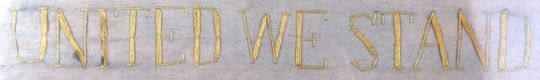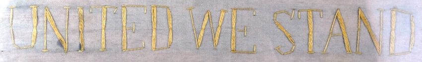 An original WWI First World War British Royal Navy sweetheart silk panel. The framed silk panel embroidered with the Allie flags beside a central photograph of the officer beneath the text ' United We Stand '. Measures approx 55x62m.