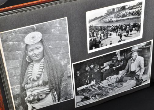 Warrant Officer Leonard Albert Little 365880 - x3 original WWII Second World War interest photograph albums originally belonging to Little, all filled with photographs taken during his service in the 1930s and likely just before the outbreak of war. The first album (large brown album) starts in India 1930-1934 and shows: the Suez Canal, Gibraltar, Central Wireless Station 1931, Ambala, lots of telephone communication equipment, a crashed aeroplane, aircraft hangers, aircraft, hunting trips, Murree, Wireless Station No.1 Group RAF 1933, The Khyber Pass, 'Tornado Passing Near Peshawar,' various camps, a shot-down plane 'by Tribe', Gurkha displays, a cricket match, lots of 'native types', and many others. Well filled.The second album (decorative brown album) features: several of an RAF base, local views, HMT Dilwara, trips including Egypt, RAF Squadron photographs, sports, various ships, photographs taken in-flight, temples, and other views. Small format, well filled.The third and final album (smallest brown album) includes more generic views of places and people, some official images present. Again, well filled. Includes his official 1941 warrant and some loose paperwork / photographs. Interesting insight into a pre-war India.