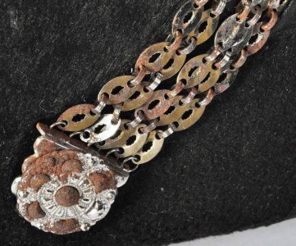 An early 20th Century Royal Navy Officers bicorn / bicorne dress hat. The cocked hat of usual form finished in black felt and having a white metal chain and lower mount decoration. Makers mark for Walker & Dannell to the inside lining.