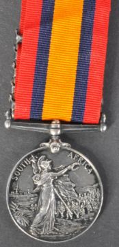 Boer War - A Victorian 19th Century Boer War Queen's South Africa medal, for one 25484 Driver Frederick Rose of the 18th Battery, Royal Field Artillery. With clasps for South Africa 1901, Johannesburg, Paardeberg, Modder River and Belmont. With ribbon. Supplied with a large quantity of related printed research which also lists his regimental numbers as 25465 / 25405, the documents including medal cards, discharge papers, service records etc. Rose went on to serve in the First World War.